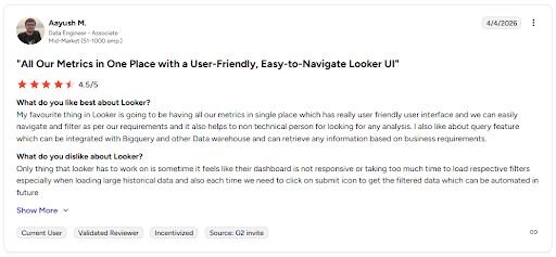 Centralized data model keeps reporting consistent across teams | Initial LookML setup requires a data engineer |