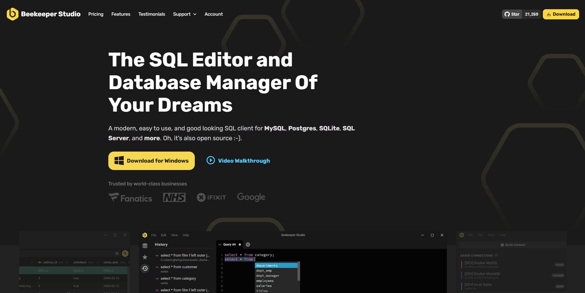 I found Beekeeper Studio easy to navigate when I tested it across a few databases. The layout stays clean, and the open-source design keeps it flexible for mixed setups. It handled Postgres, MySQL, SQLite, and SQL Server in my tests without extra configuration.