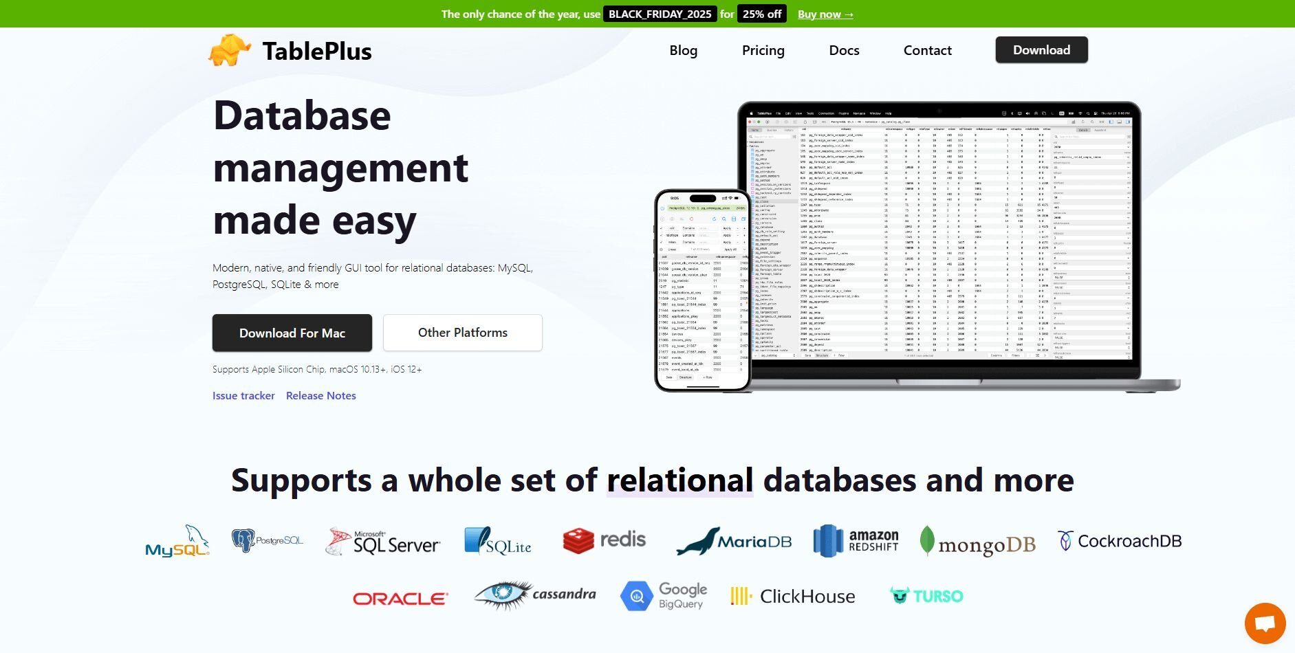 I tested TablePlus when I needed a lightweight SQL editor that focused on speed. It opens quickly, keeps the layout centered on tables and queries, and supports several databases without extra setup. The workflow fits technical users who move between environments and want direct control over their SQL.